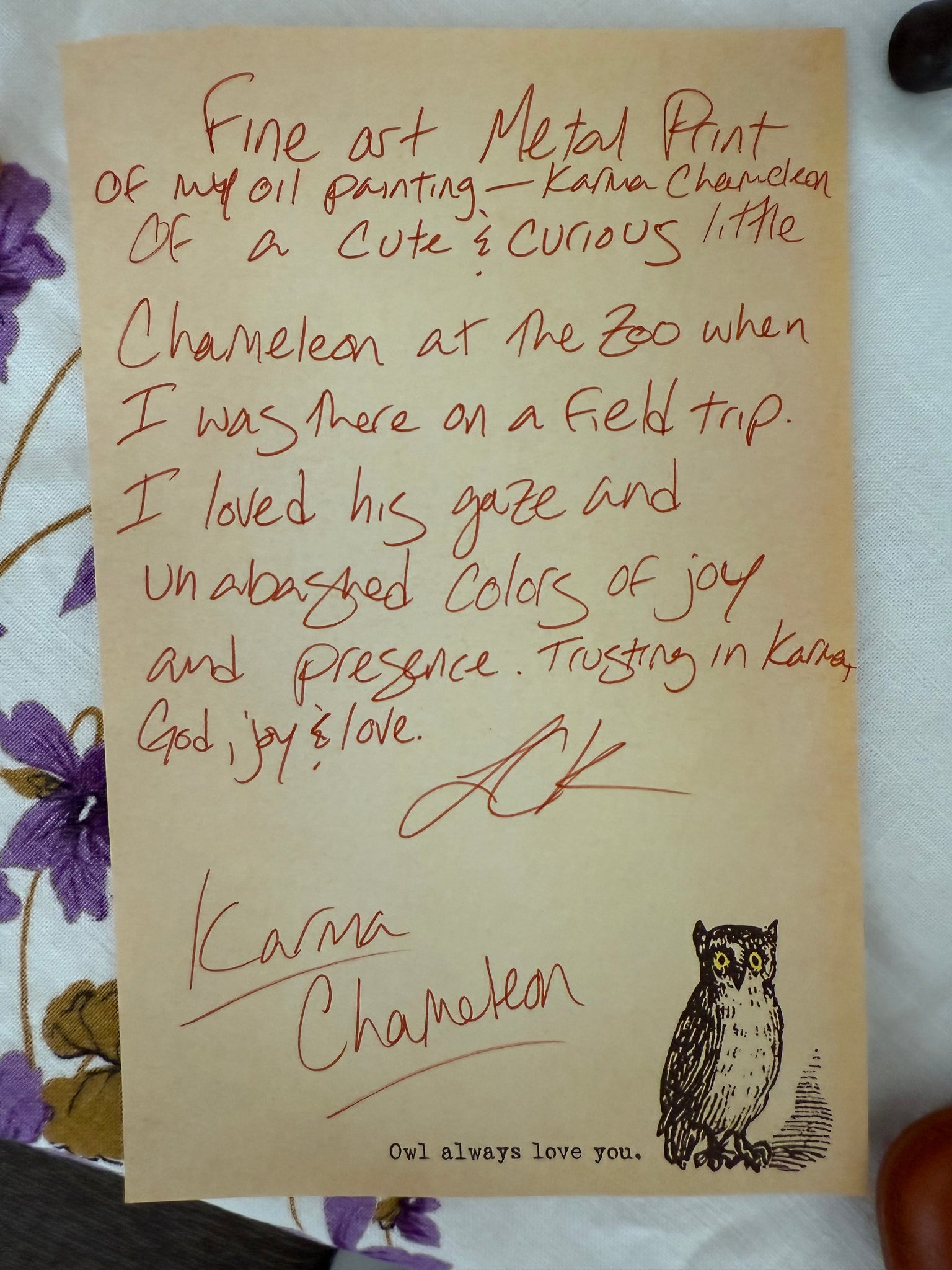 Ready to Hang Fine Art Metal Print of my oil painting: Karma Chameleon